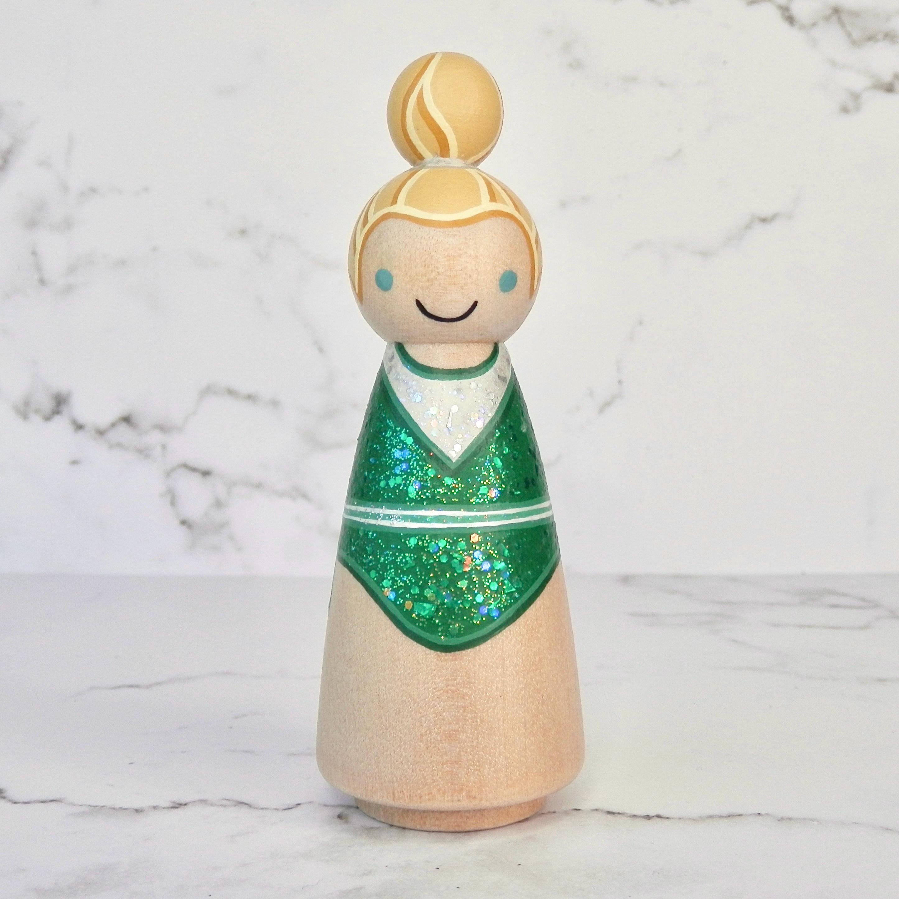 Peg dolls are available in multiple sizes and shapes. Please refer to the pictures for specifics. Dolls are painted and finished with nontoxic acrylic paint and varnish.