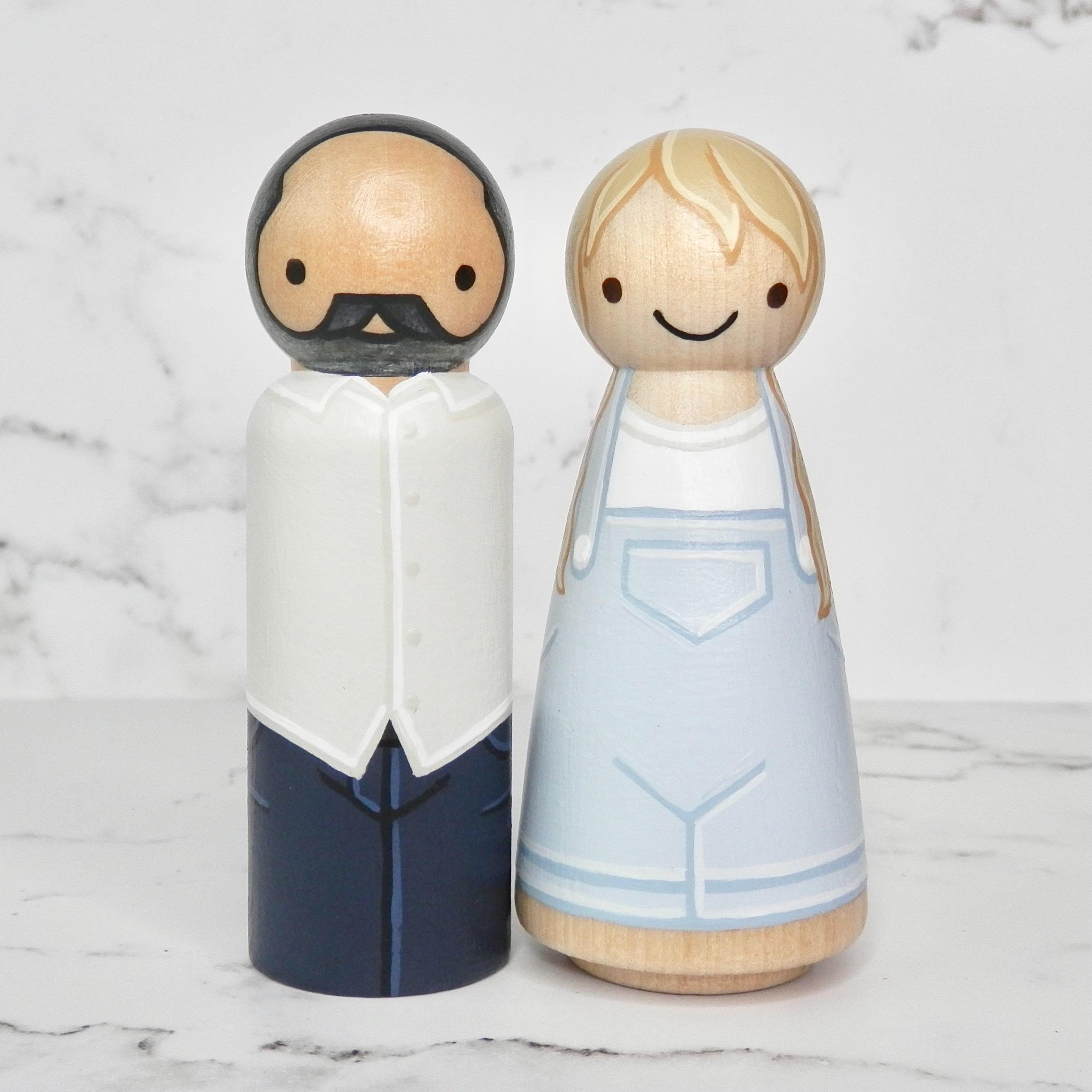 Recreate your significant other and yourself, parents, or grandparents with a custom peg doll couples portrait. There are two different shapes to choose from. Decide on the ones that best fit your specifications, and let me know after placing your order. This is an LGBTQ friendly business! Custom doll orders may not be used to request copies of another peg doll artist’s work.