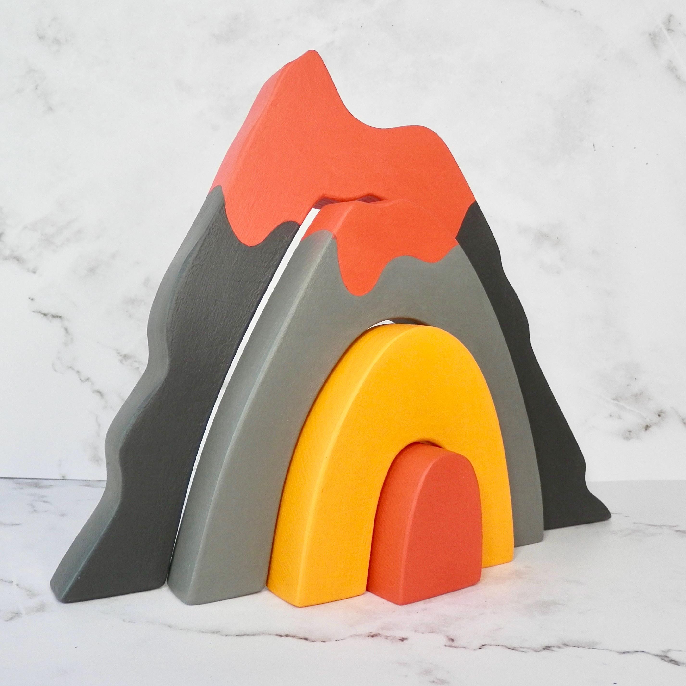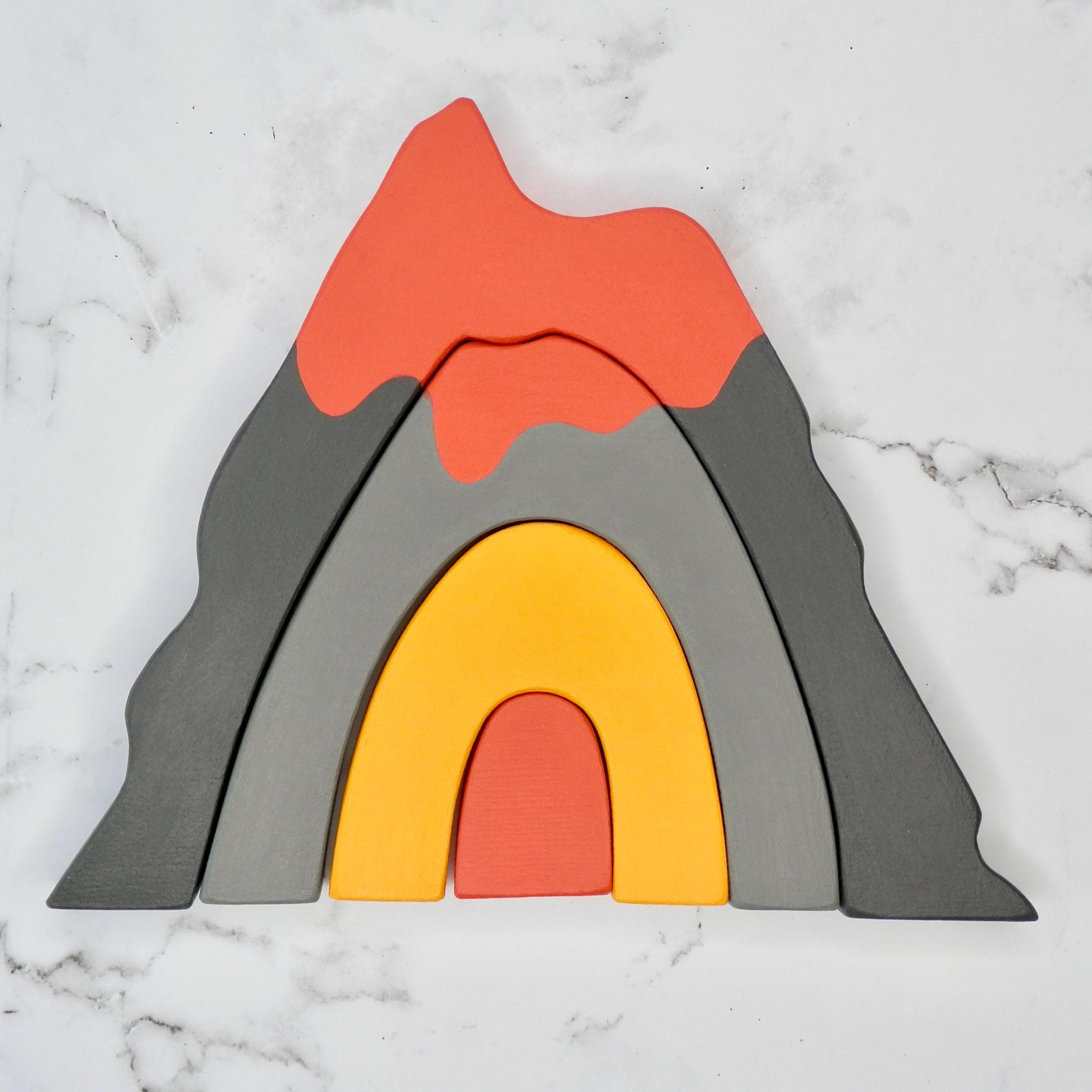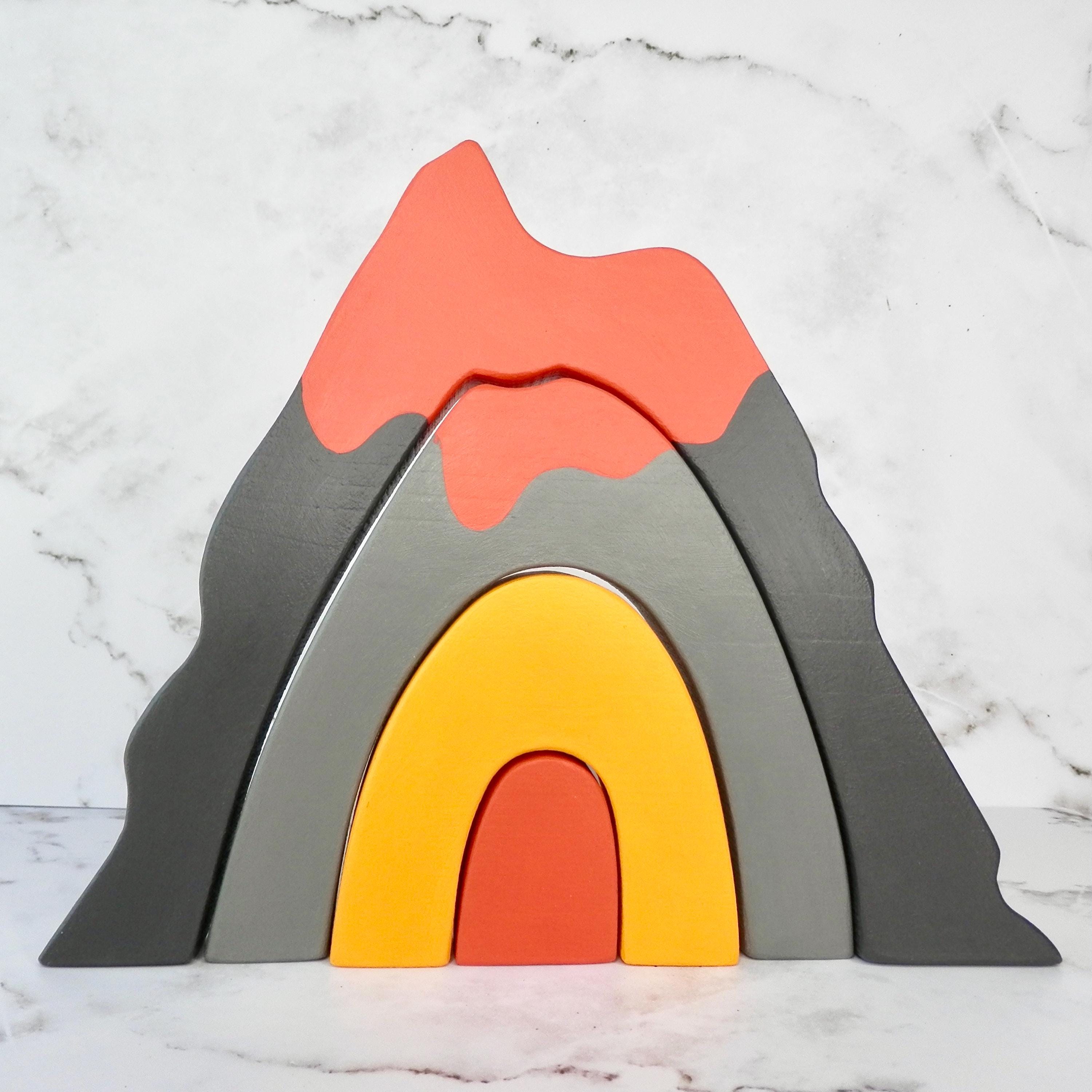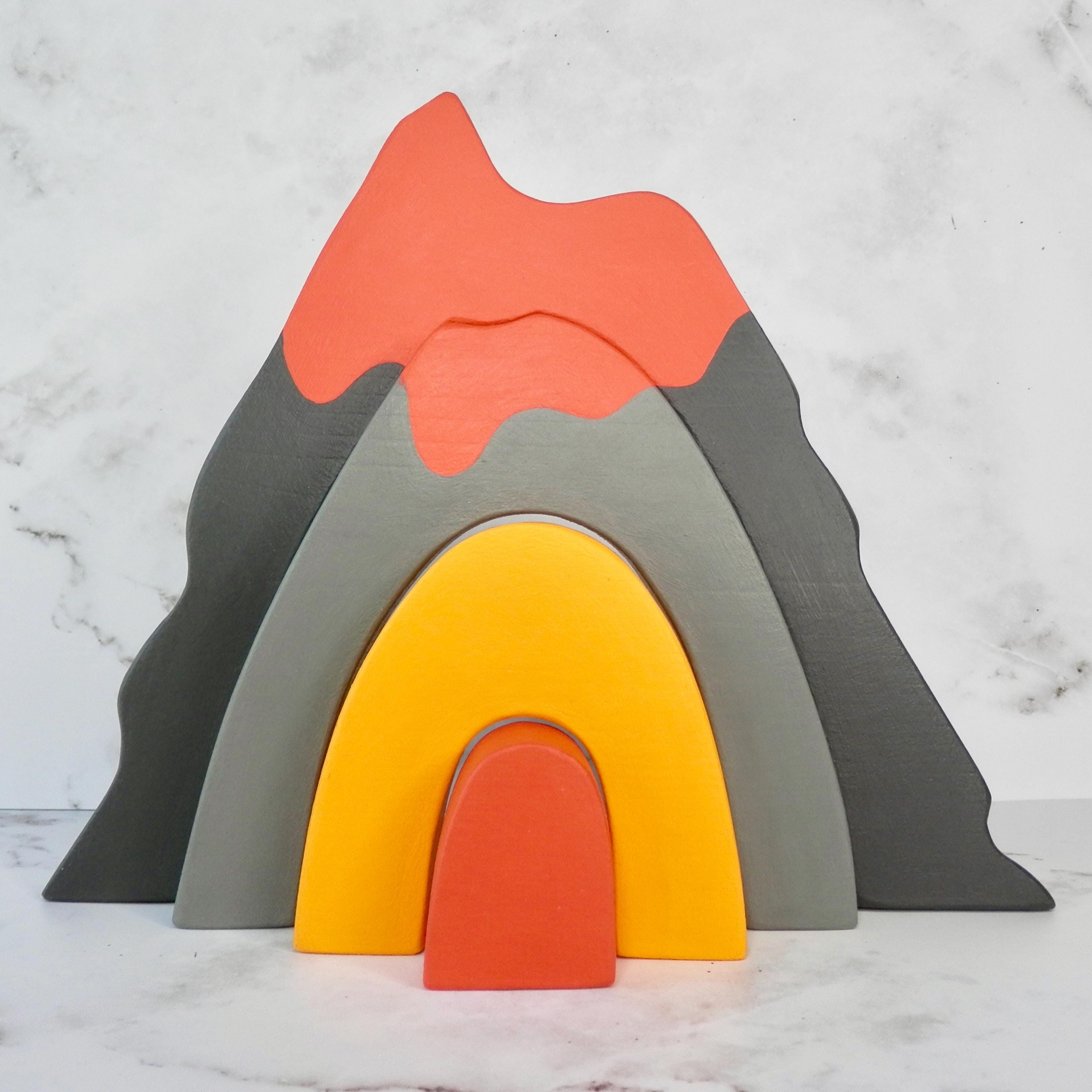 Listing is for one hand painted wooden stacking mountain (4 pieces). The mountain shape is hand cut, so there will be small imperfections, as is the case with most handmade items. The example I painted for the listing photos has a slight warp to the outermost piece, making it difficult to stand upright, and is being sold for a discount. Only one of these is available! After it’s sold, future orders will be listed at full price.