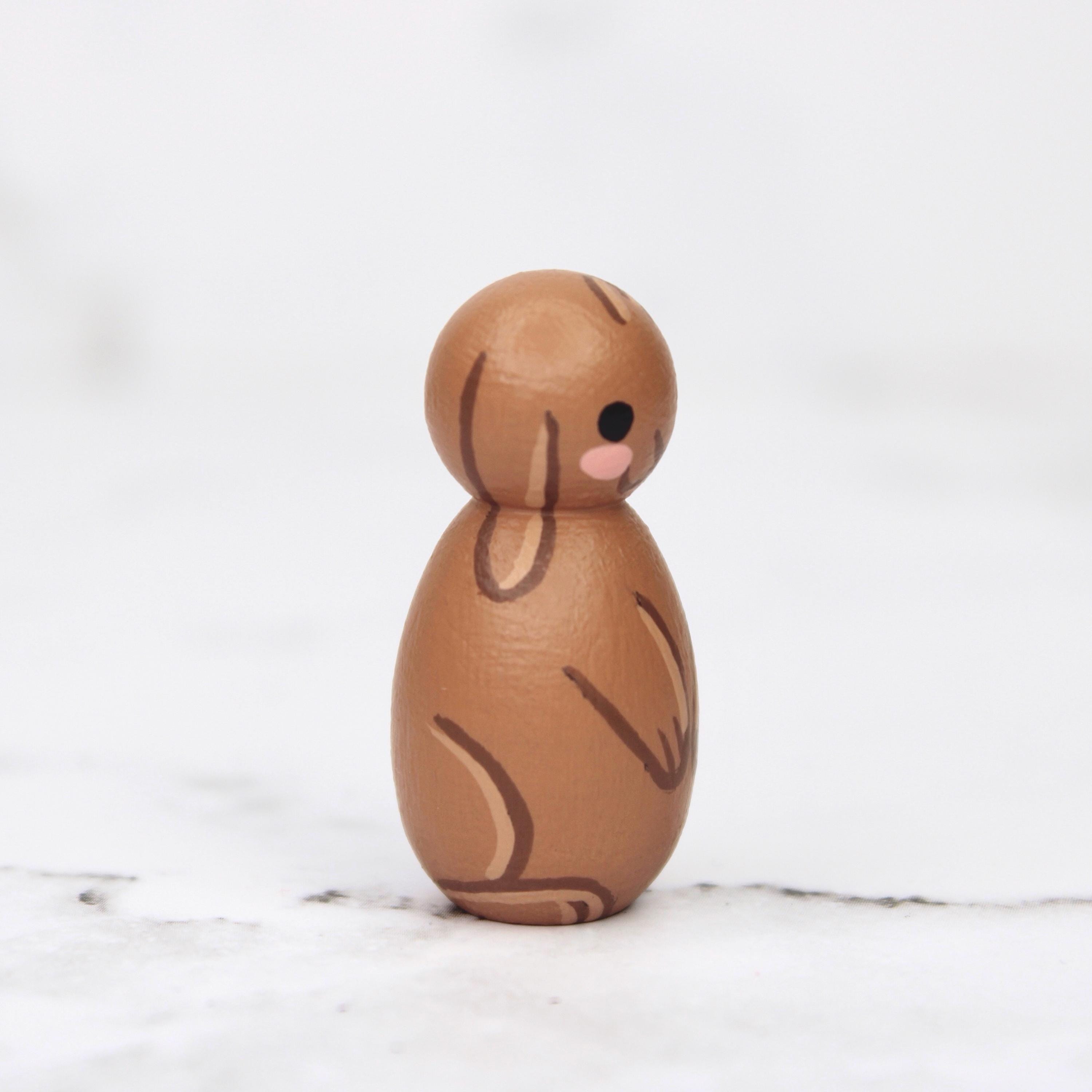 Hand painted miniature bunny peg doll. This doll would make a great addition to a farm themed doll house or paired with your Easter and spring toys.
